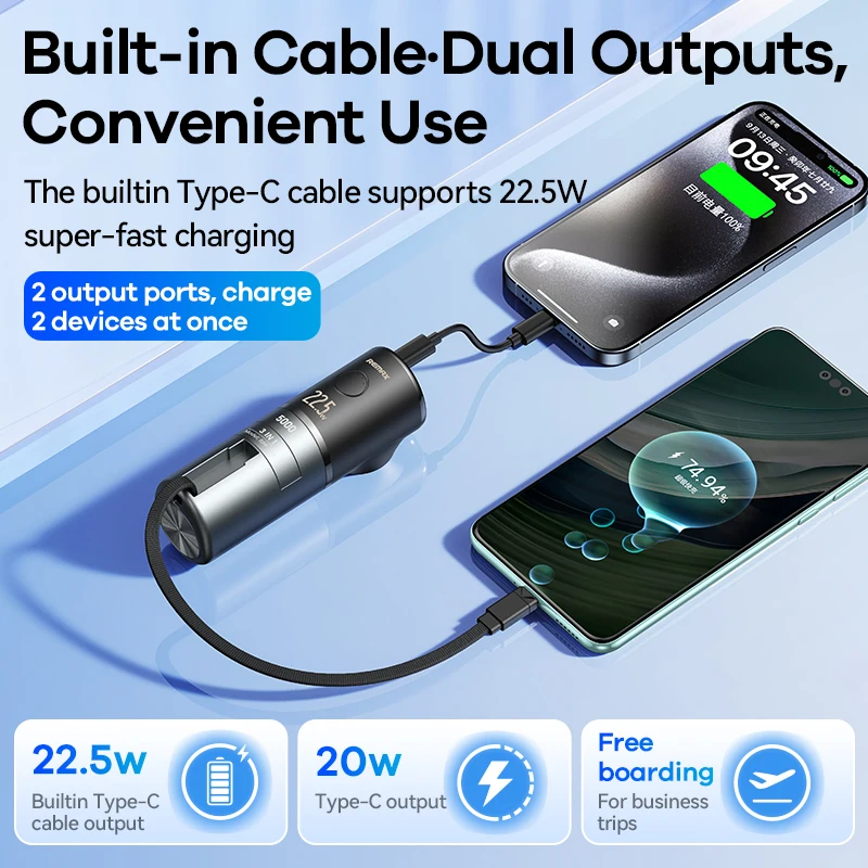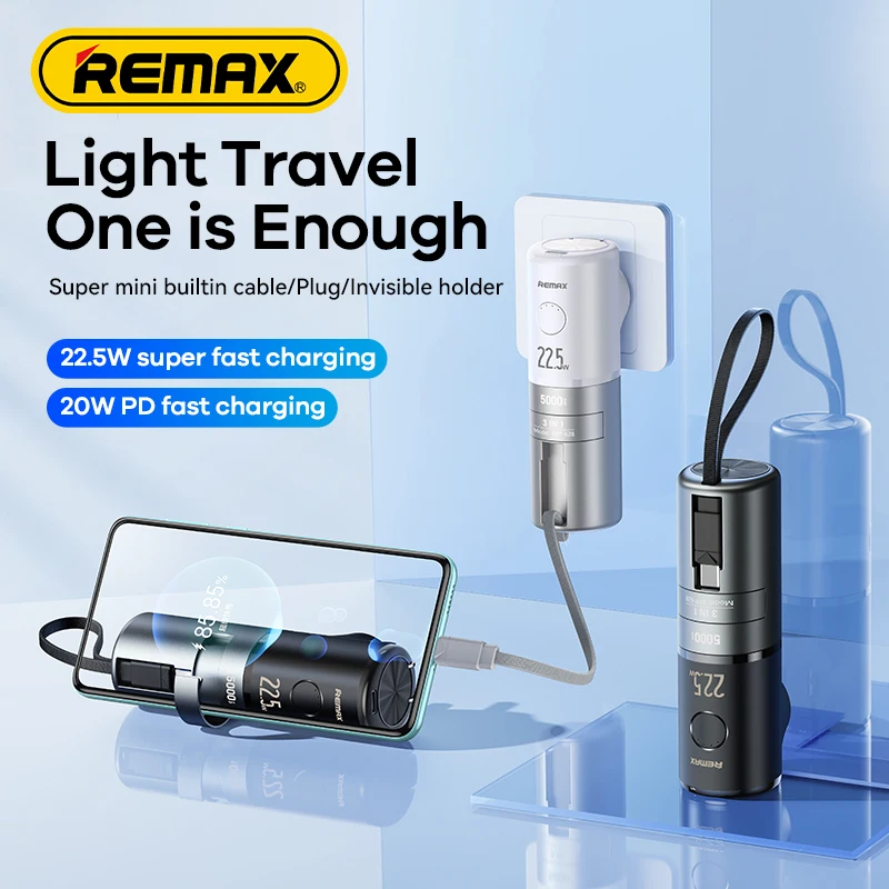 Banque de puissance de charge rapide Remax Rpp-628 5000Mah avec 20W Iph câblé et support d’adaptateur Mini banques d’alimentation portables d’urgence