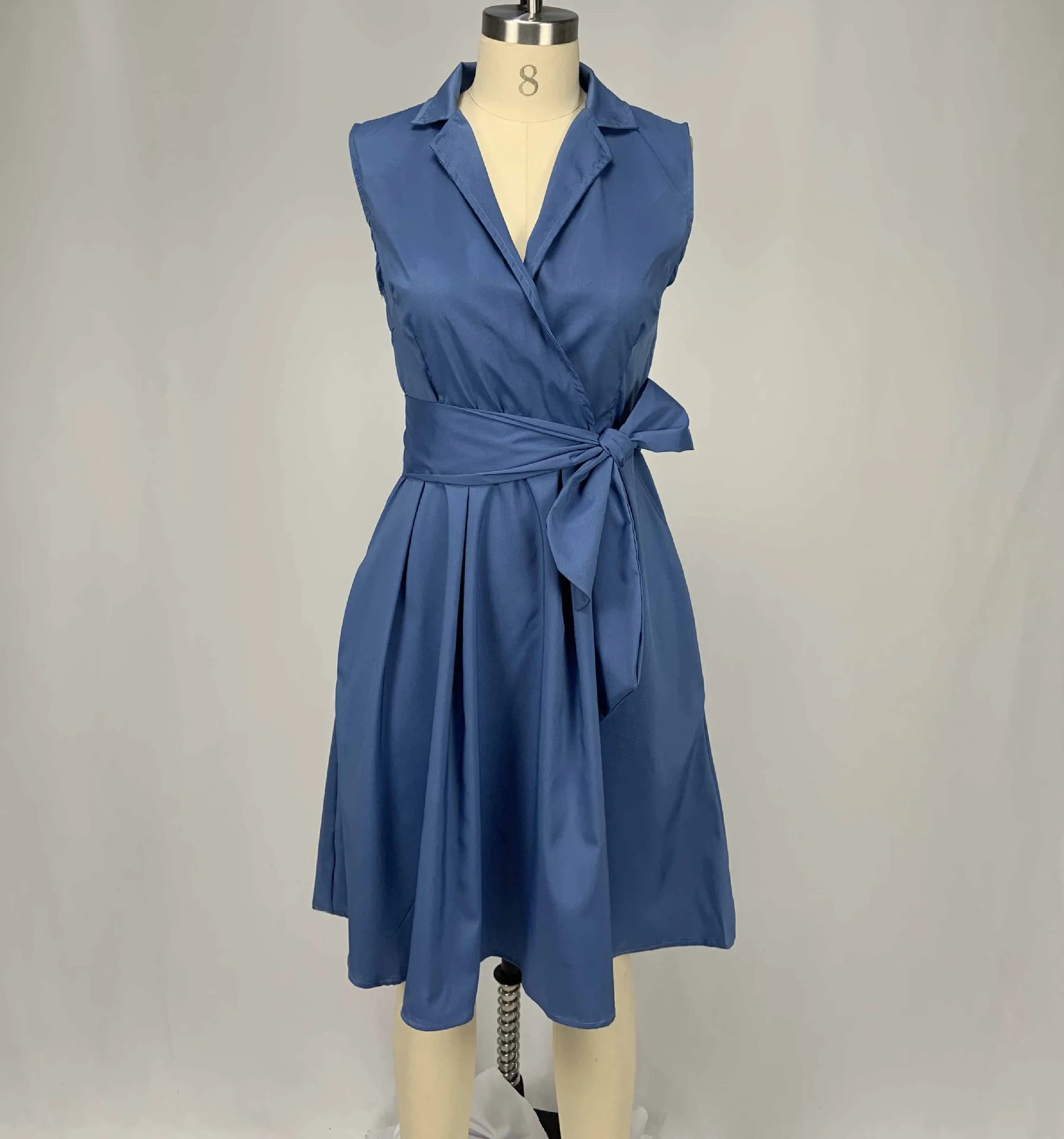Vente chaude couleur unie été élégant dames robe de bureau femmes professionnelles travail formel sans manches ceinturé une ligne robes de carrière