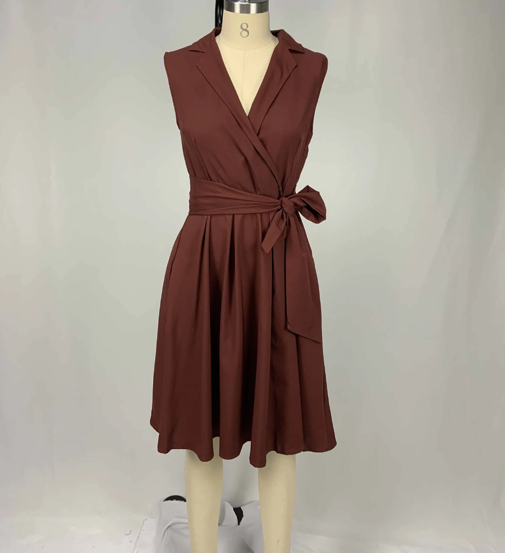 + livraison par tout au MaliVente chaude couleur unie été élégant dames robe de bureau femmes professionnelles travail formel sans manches ceinturé une ligne robes de carrière
